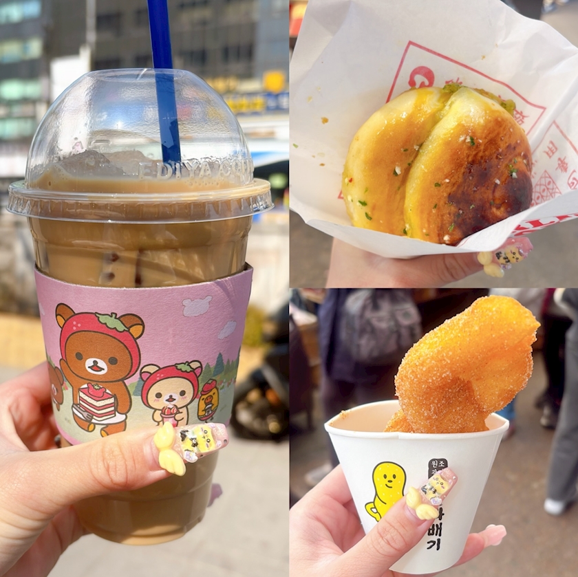 その後、広蔵市場でもち米ドーナツとガーリックパンを食べ歩きし、カフェオレをテイクアウトしてからホテルに帰宅🍩🥐☕️