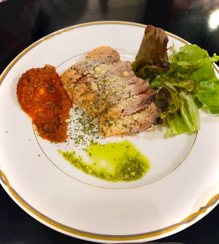 サーモンのレアステーキも