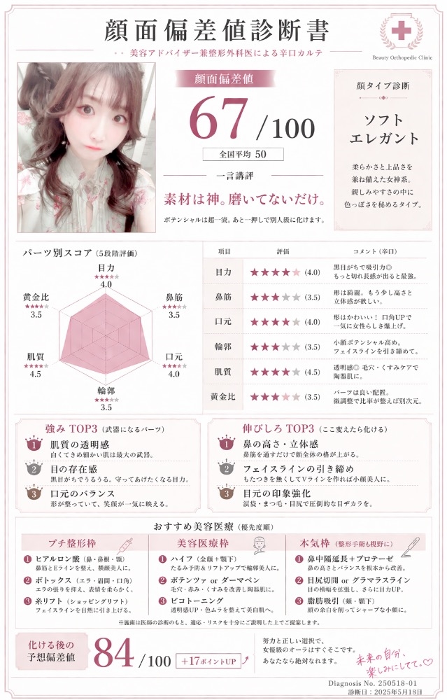 顔面偏差値診断、やってみたよ😂