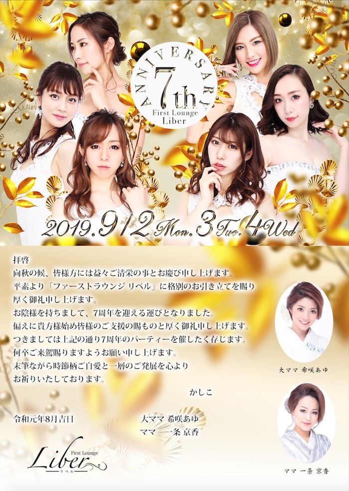 もうすぐ7周年いべんと❤ - 希咲 あゆ (ママ) - First Lounge Liber・リベル - 名古屋 錦のクラブ/ラウンジ