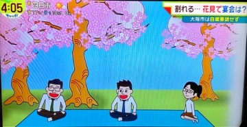 お花見は横一列になっ