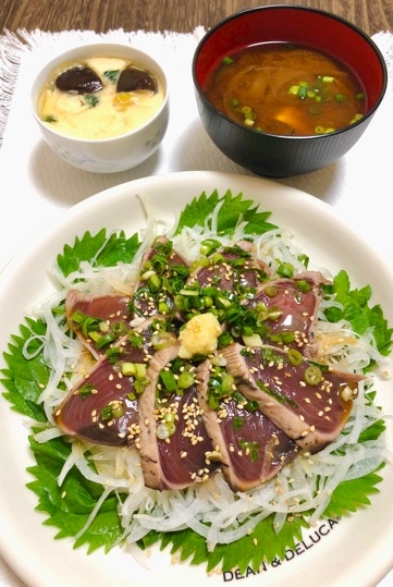 茶碗蒸しと鰹のタタキ