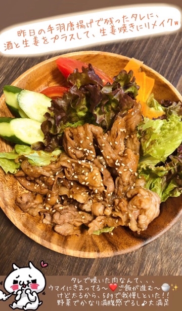 っで、もしタレがあまったら、生姜と酒をプラスして、生姜焼きとかにリメイク!
