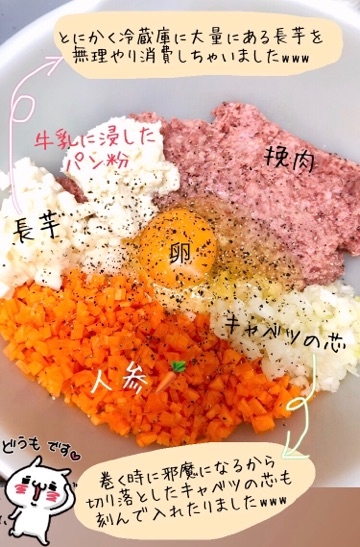 玉ねぎの代わりに、思い付きで長芋を入れてみたんだけど、結構アリだった!!!