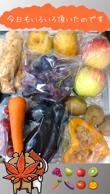 いただいた、トマト、カボチャ、りんご