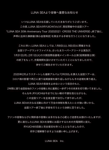 LUNA SEAが…充電期間に入るって🔋