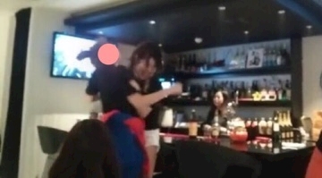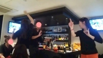 避けながら通る店員さん……w