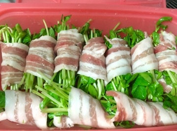 ②豚バラ肉でクルリンして