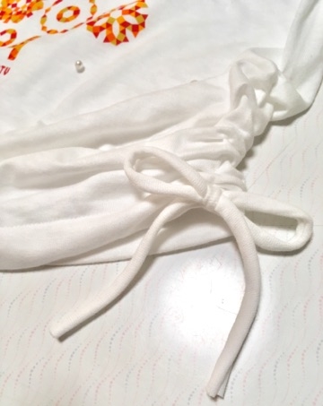 ⑦切り落とした袖の生地を紐状にし、
