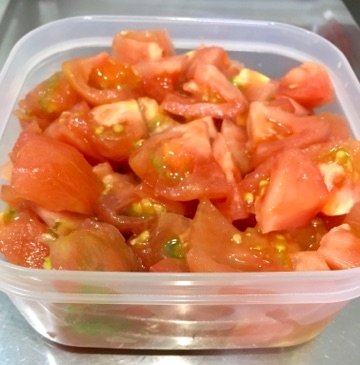 トマトも7玉、皮剥いてカットして