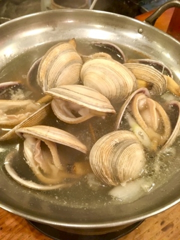 クエ鍋した鍋に大あさり投入っ!!!