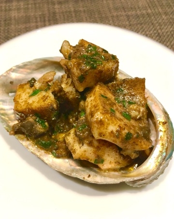 アワビのバター肝ソースにて