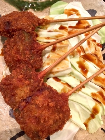 ネギとなんかの串揚げ