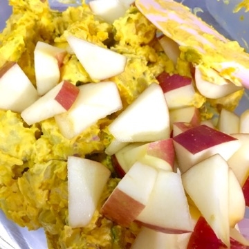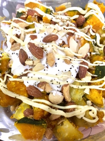 ②まぁまぁ冷めた頃に、マヨ・ヨーグルト・ナッツ・塩胡椒・お好みで蜂蜜で全体にあえる。