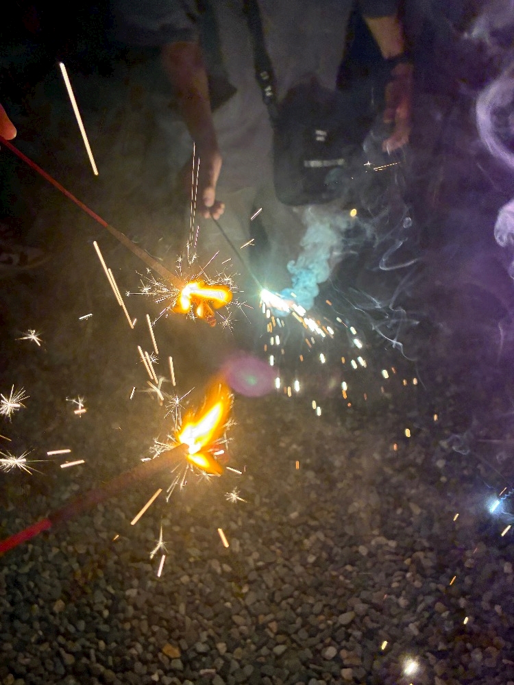駐車場で花火したよ