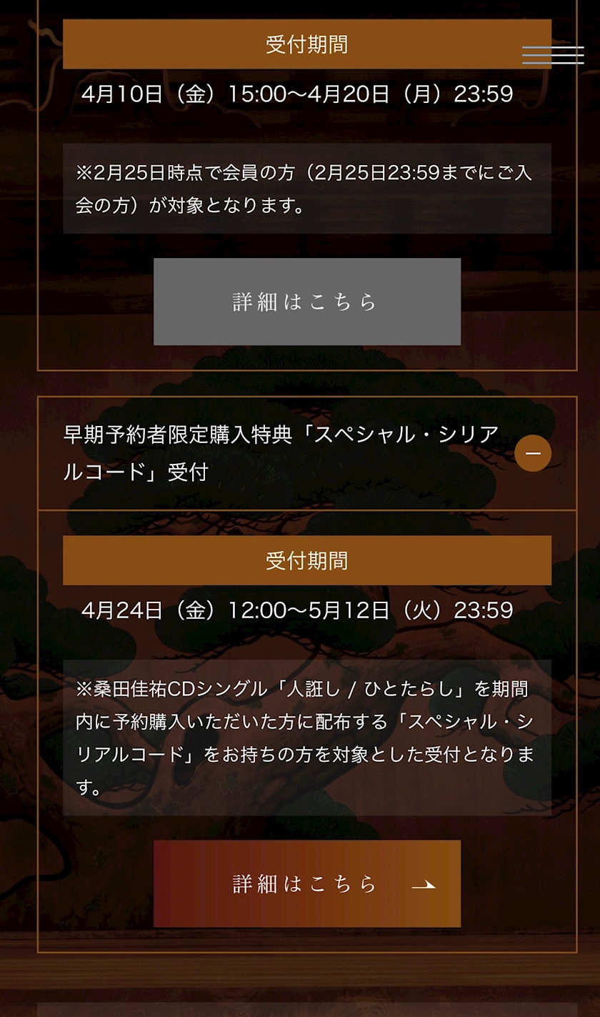 来月から桑田佳祐様の抽選受付が