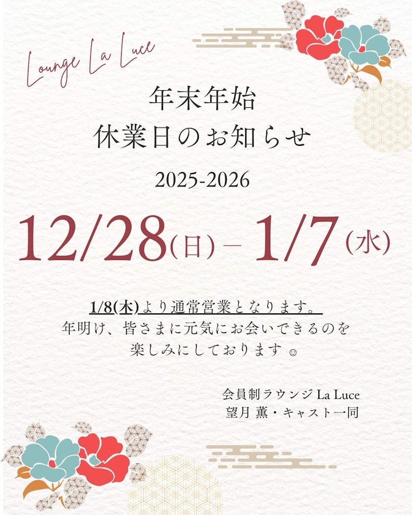 謹賀新年 - 遥 るか - La Luce・ラルーチェ - 名古屋 錦のクラブ/ラウンジ