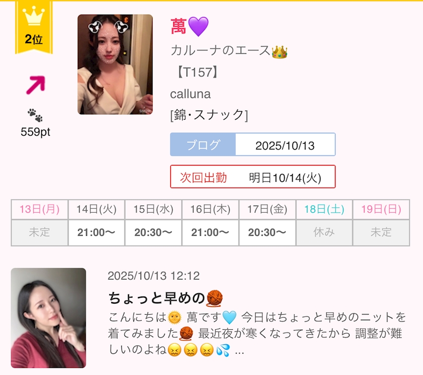 錦・スナック・女の子ランキングで