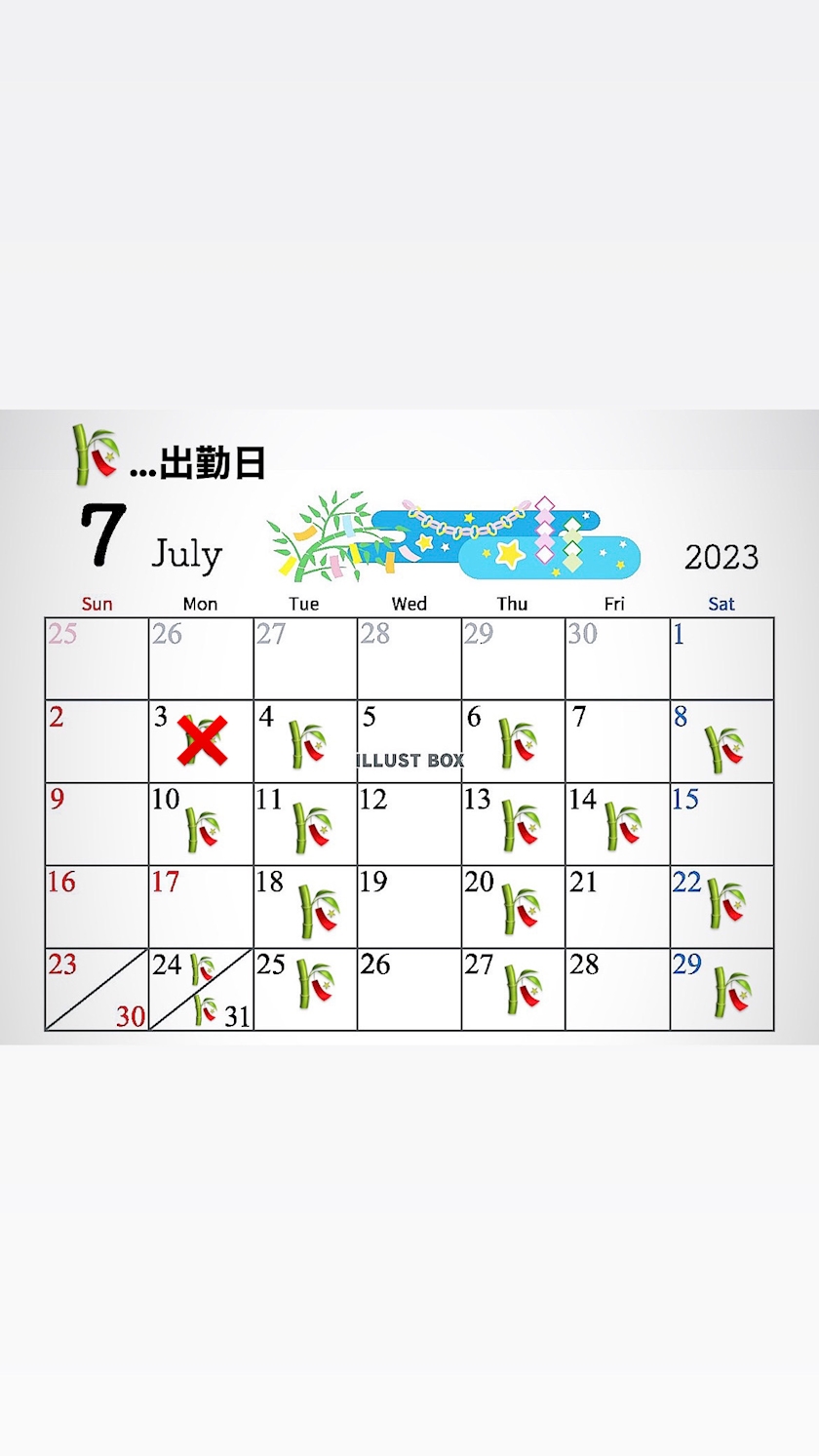 7月の出勤カレンダー作りました🎋