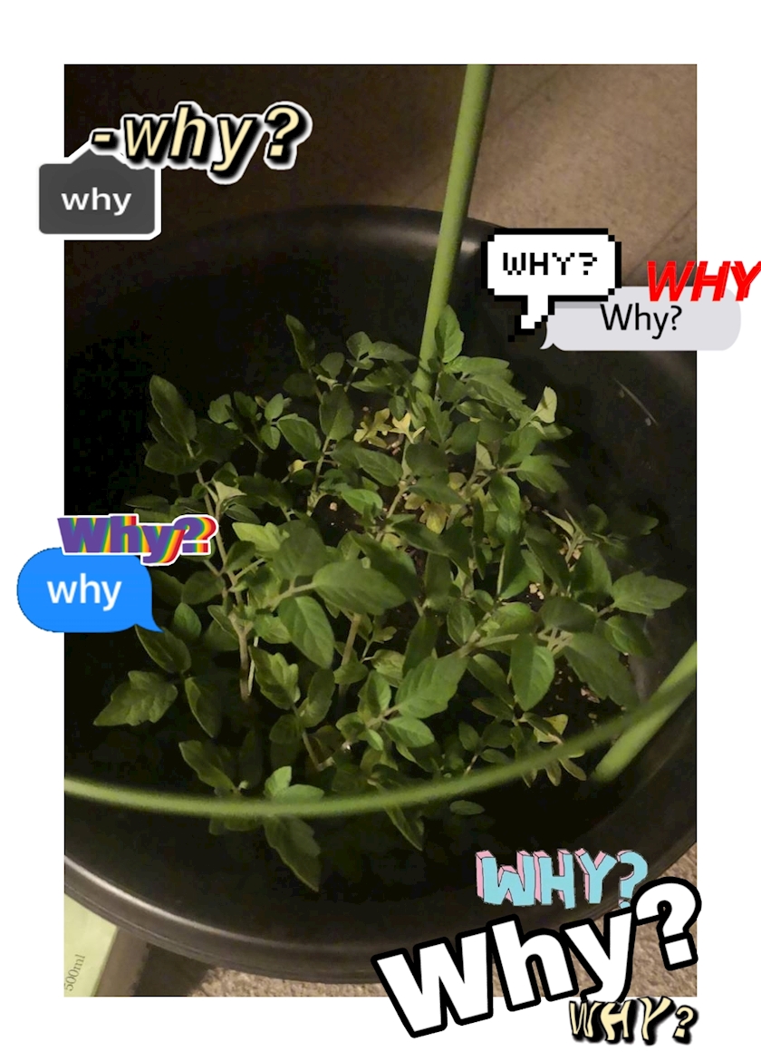 姪がミニトマト栽培の壁にぶつかってるので😂