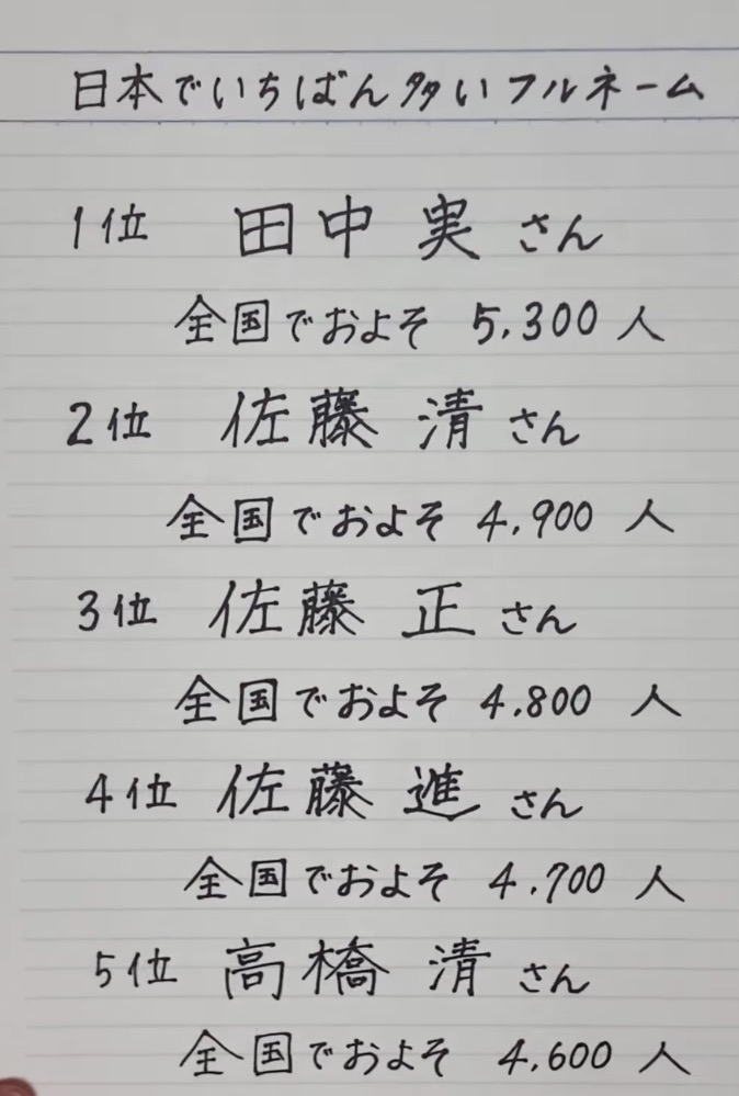でもフルネームだと佐藤さんが1番じゃないんですよ…