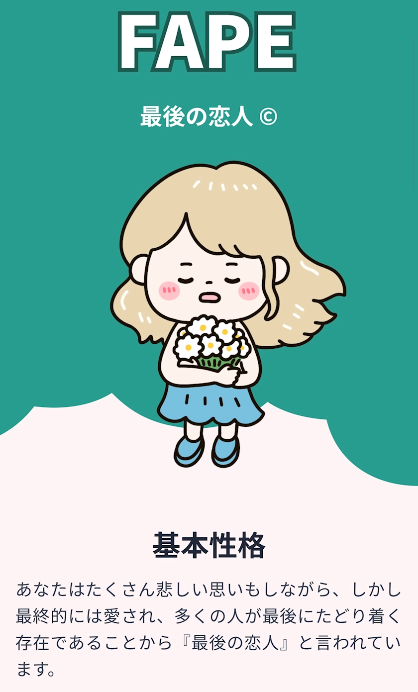 おもに恋愛についての質問に答えていって、自分がどんな恋愛タイプなのか16のタイプに分けるって診断なんですけど