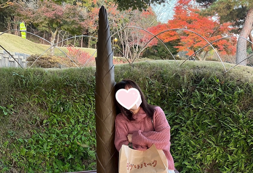 でっかいたけのこ?にもたれてる私🌝