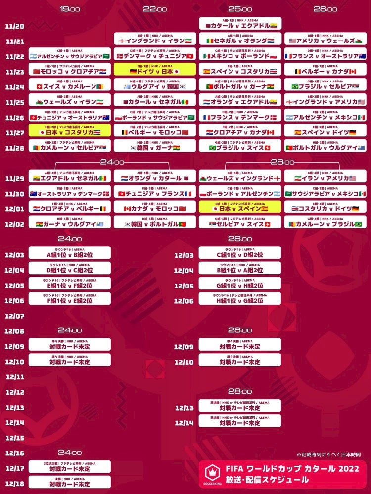 ワールドカップ日程表です⚽️✨