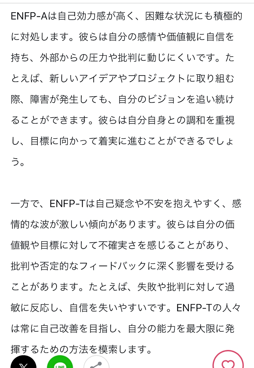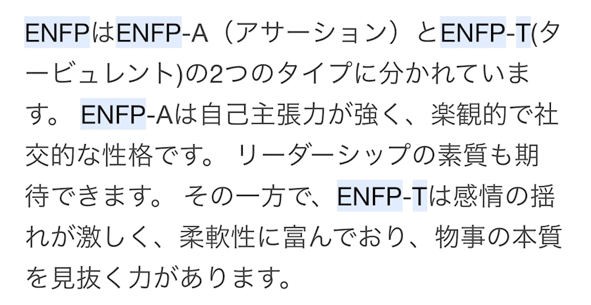 同じ運動家でも、うたちゃんはENFP-Tで私はENFP-Aなんだよね😲