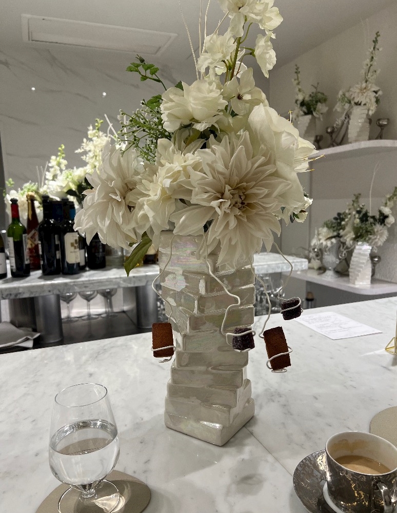 花瓶からぶら下がったプティフール可愛い☺️🧁🍇
