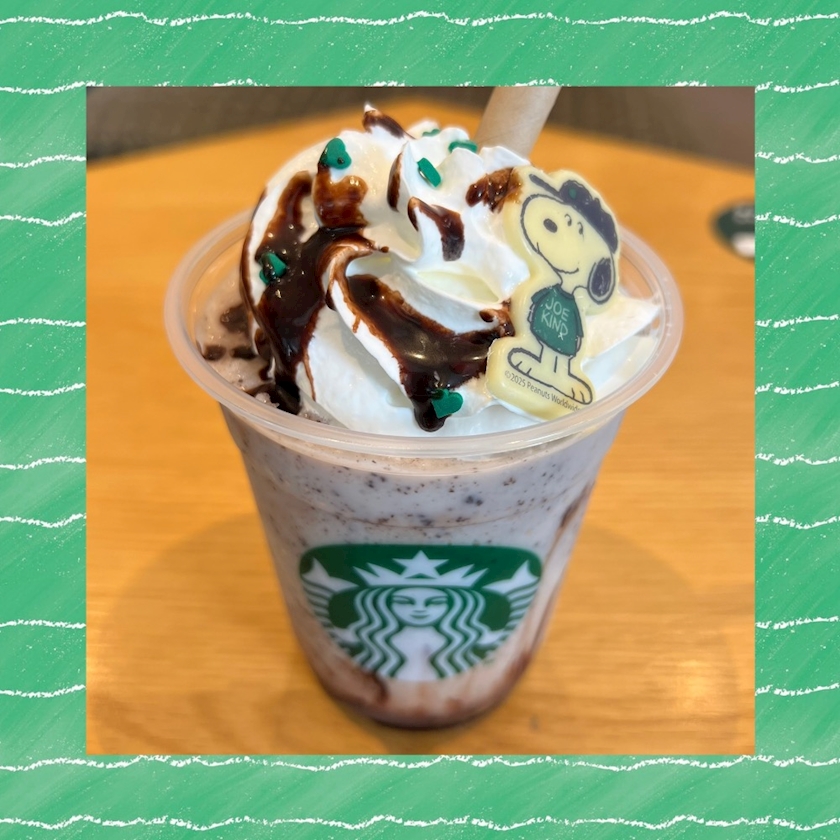 ジョー カインド スヌーピー キャラメル チョコレート オーツミルク フラペチーノ←長い