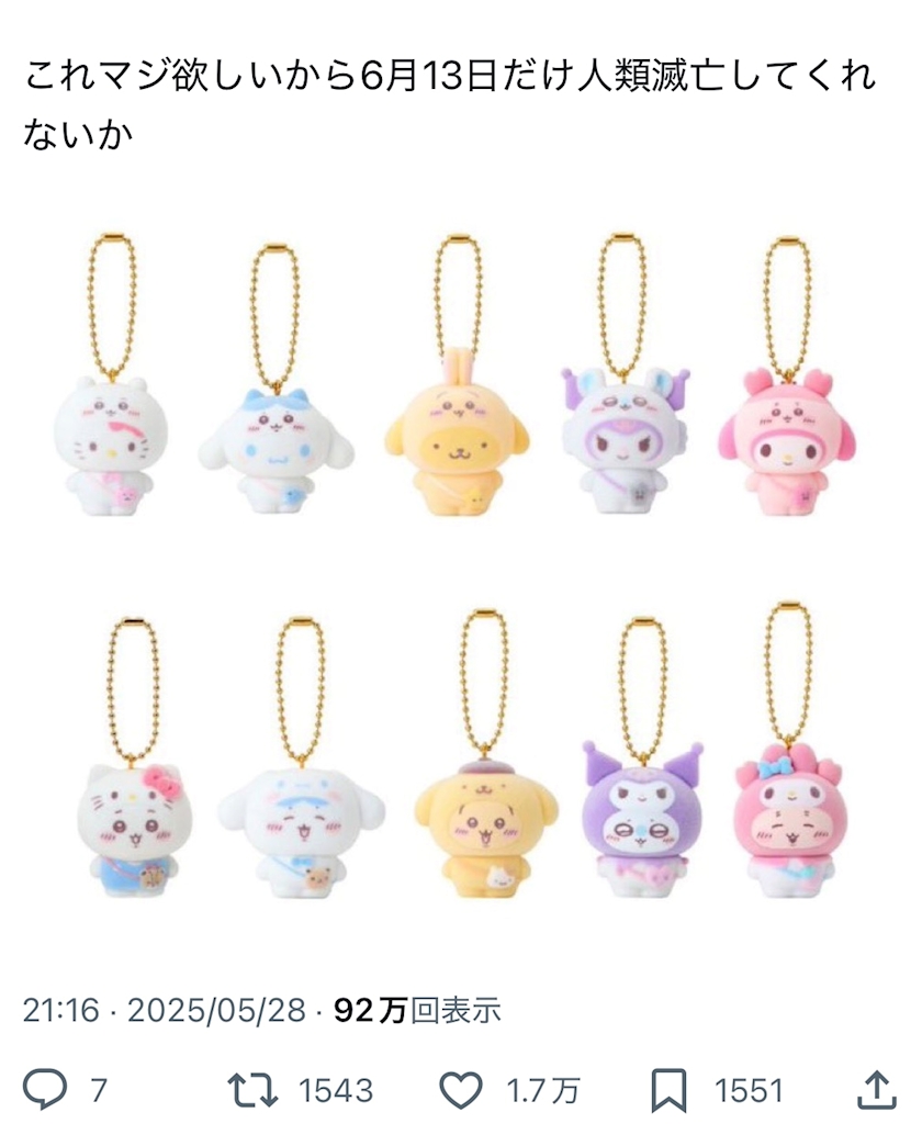 ちいかわとサンリオ(上位キャラ)推しの方はグッズありすぎてお金いくらあっても足りないよね😂😂