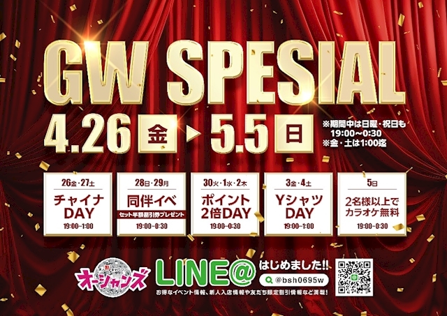 19:00~0:30 (金・土は1:00まで営業) ※日・祝日は18:30~23:30 (祝前日の場合は除く) |