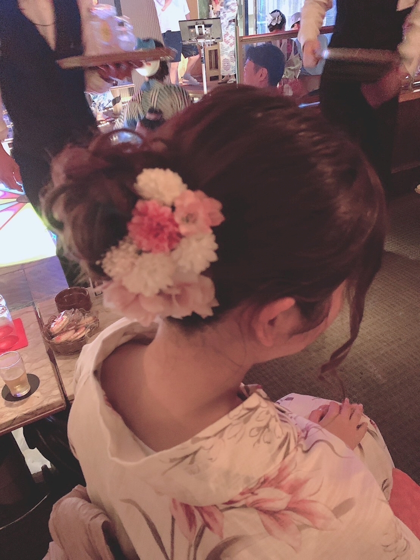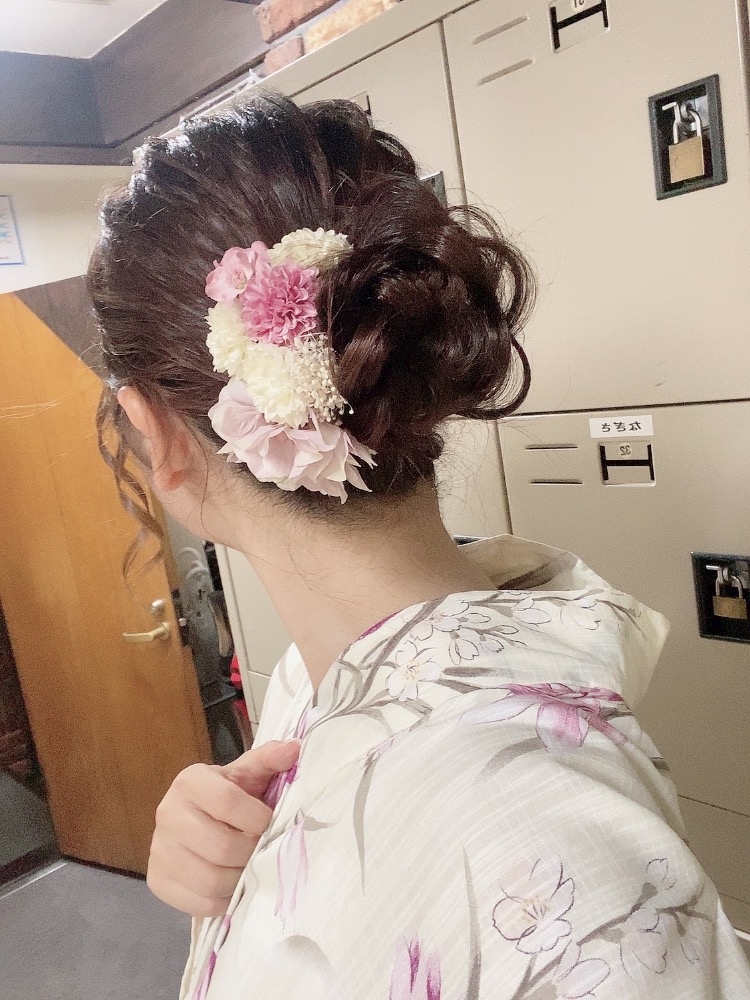 先日の浴衣デーの時のお花飾り🌸