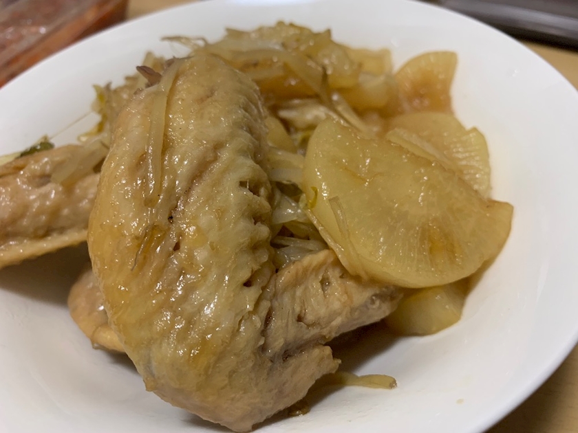 手羽先煮込みながら缶酎ハイ飲んで