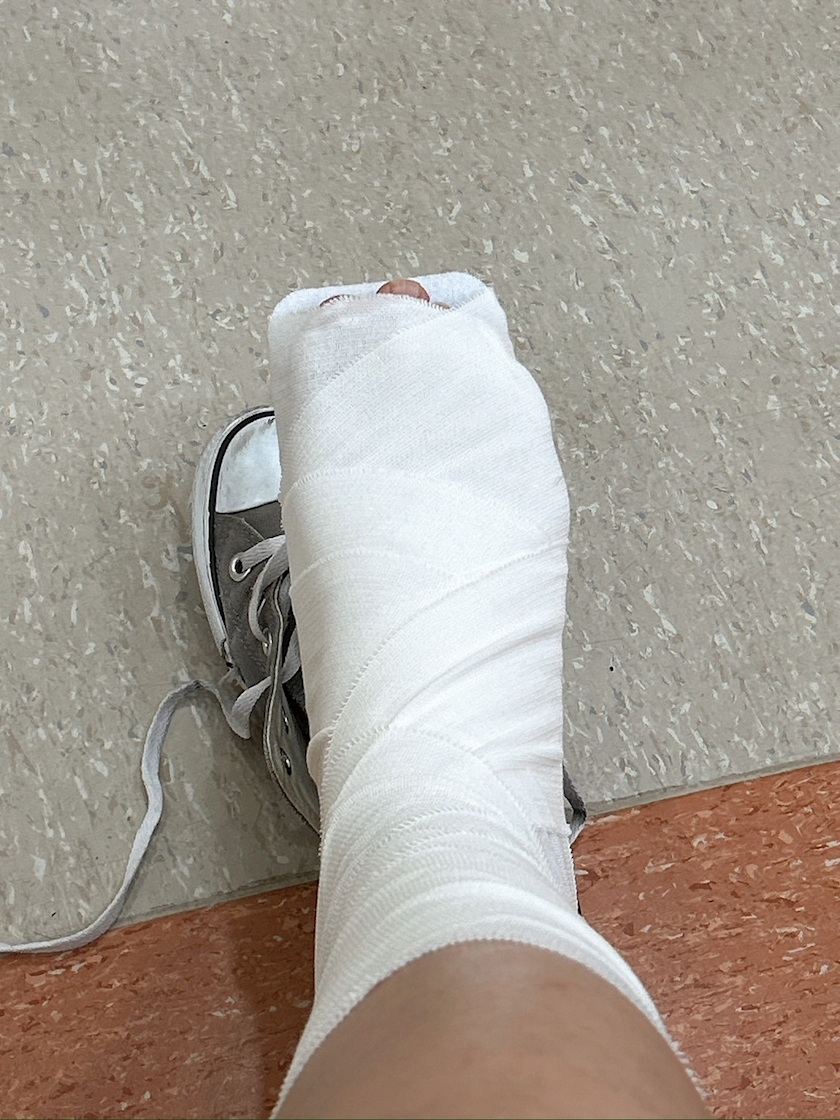 シーネで固定ですって…