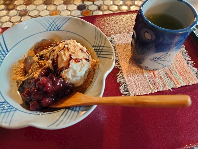 わらび餅とアイスと熱いお茶🍵