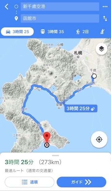 北海道地域の距離感が分からず、
