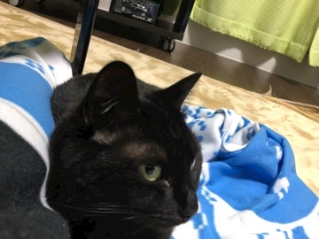 起きたら黒猫が膝に乗って寝てた。