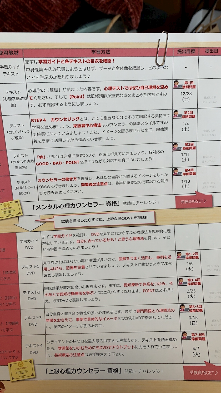 教材開封した日に2回目の提出目標日
