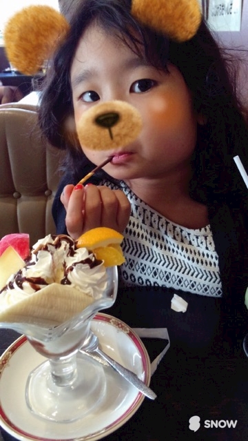 給料計算しながら娘にパフェ
