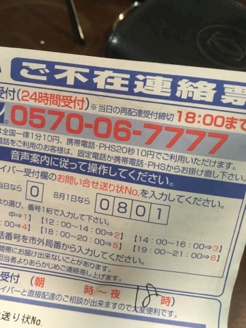 不在票入ってたから