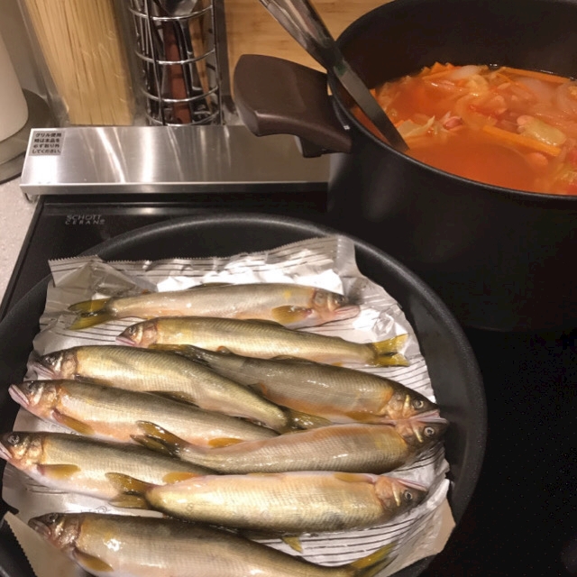 あとはお客様から郡上でとれた落ち鮎もらったから甘露煮も作ったの❤️