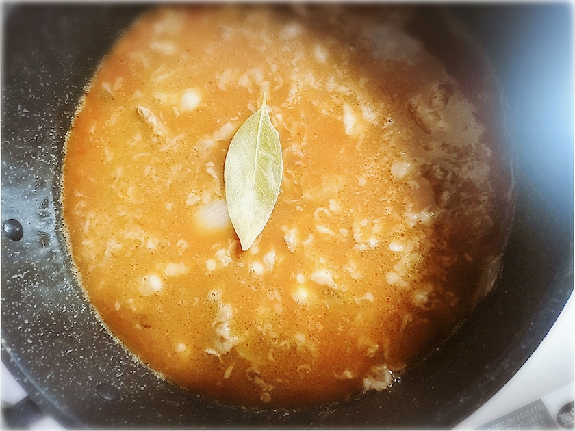 ほいでトマト缶、ローリエいれて