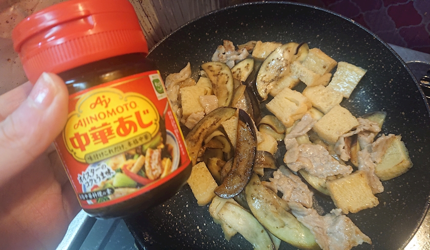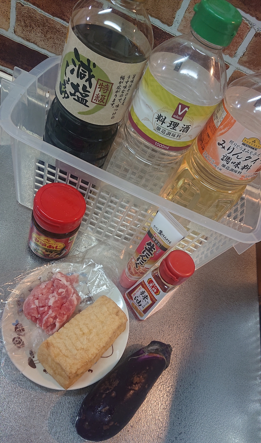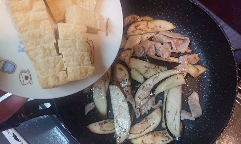 調味料となすと厚揚げと豚肉