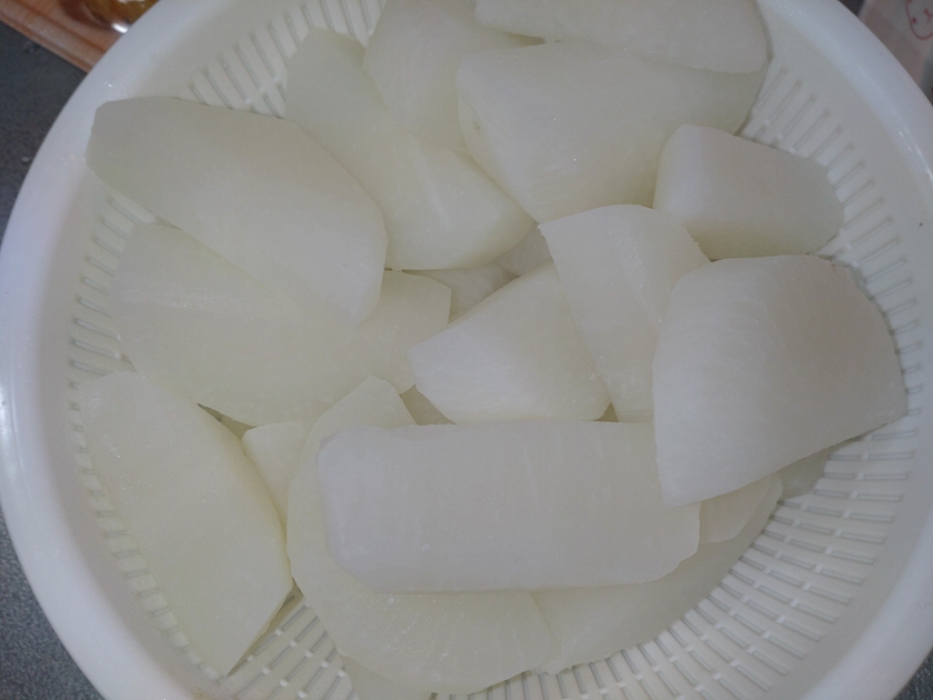 大根をきって
