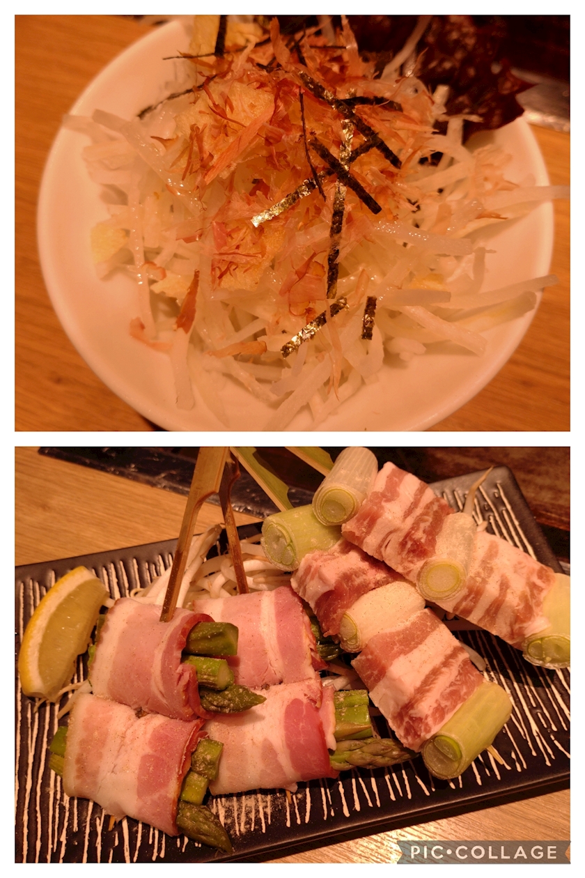 大根サラダ&串盛り