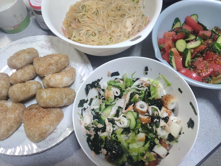 お手製焼きおにぎり&サラダ達