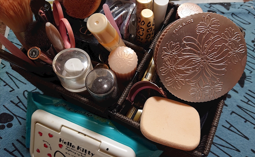 お化粧しながら