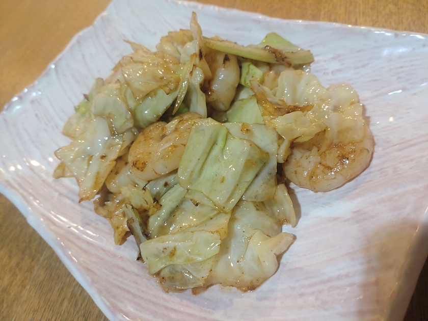 海老と塩キャベツの炒め物